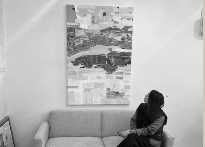 Keely creates minimalist collages characterized by expansive white space, achieved by cutting from the margins of early to mid 20th-century magazines. The process of scouring through these magazines becomes meditative as she seeks out intriguing textures, colors, patterns, and words or phrases, allowing this flow-like state to guide the search for material and later in the composition.